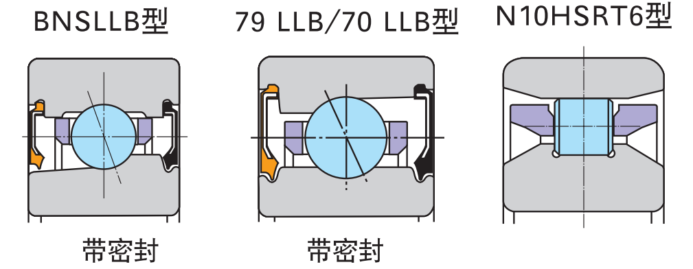 表面改性的ULTAGE系列軸承前綴代號為2LA-;更環(huán)保的油氣潤滑,通過減少空氣量、油料量達到節(jié)能目的,前綴代號為HSL、N10HSLT6;脂潤滑高轉(zhuǎn)速型,前后綴代號BNS LLB、N10HSRT6。