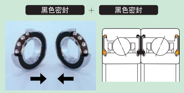 ULTAGE系列帶密封角接觸球軸承,通過封裝潤滑脂,后期不需要潤滑脂加注,且為了識別方便,在正面和背面采用不同顏色的密封,可通過顏色確認正面(黑色)和背面(橙色),方便配對使用。