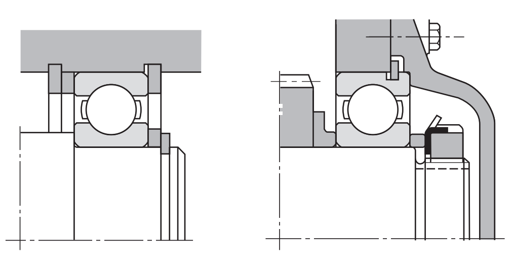有些軸承帶的有止動環槽,止動環槽設計,就是方便軸承固定的,但止動環不能應用于高精度以及軸承載荷壓力較大的場景,止動環固定如下圖所示。