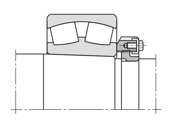 圓錐孔軸承安裝于圓錐孔時,由于錐形軸與錐形軸承內圈本身就會套緊,所以不需要附帶緊定套或退卸套,但需要剖分環卡緊,具體的做法是把剖分環卡入軸上的溝槽內,再用緊定螺釘鎖緊,如下圖所示。