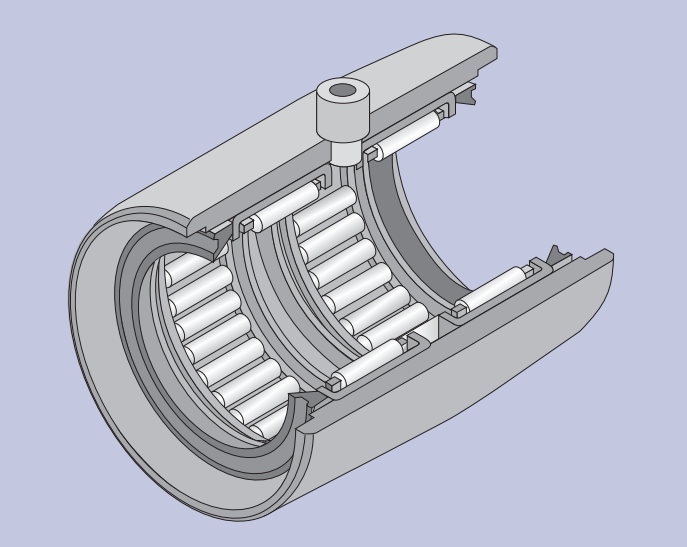 FR型羅拉軸承如上圖所示,是將兩套沖壓外圈滾針軸承組裝于軸承座內而構成的軸承,不帶內圈,直接使用軸作為軸承內圈,因而更節省空間,軸承座兩端使用合成橡膠密封圈,可根據實際使用需要,選用多層密封或組合密封,關于軸承密封,可參見文章《什么是軸承密封,軸承密封如何分類,又該如何選用?》,滾針軸承相比較而言,有更復雜更多樣的密封方式,后續我將為大家進行闡述,在此表過不提。