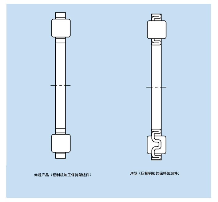 1) 由于保持架組件使用鋼板,滾柱通過沖壓成型制造,因此質量生產率非常高。