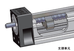 為了在更長的長度上實現更高的速度,可以在AXC和AXDL系列的線性軸上配備一套或多套螺旋傳動支撐裝置(如下圖)。