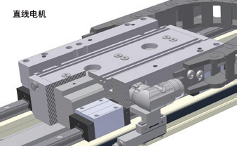 對于采用直線電機驅動的直線軸,無需將旋轉機械轉換為平動運動。因此,直線電機被稱為直線直接驅動。驅動力由集成在滑塊單元中的電機直接產生(如下圖)。