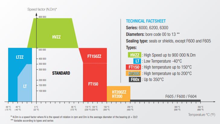熱處理的軸承鋼制成,使用聚四氟乙烯基礎油潤滑脂,該類軸承可在200度的高溫環境穩定運行,除此外,還有由普通軸承鋼制成,使用高溫潤滑脂(聚脲增稠劑+合成基礎油),可在150度的中高溫環境穩定運行。