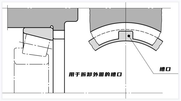 圓柱孔軸承的拆卸如上圖及下圖所示,通常使用壓力機(jī)或拉拔器來拆卸小軸承,設(shè)計(jì)還必須考慮到拆卸,如下圖所示,長(zhǎng)時(shí)間使用的大型過盈配合軸承的拆卸需要較大的負(fù)載,此類軸承應(yīng)設(shè)計(jì)為通過液壓方式拆卸,除此外,電感加熱器可用于拆卸具有可分離內(nèi)圈和外圈的圓柱滾子軸承。