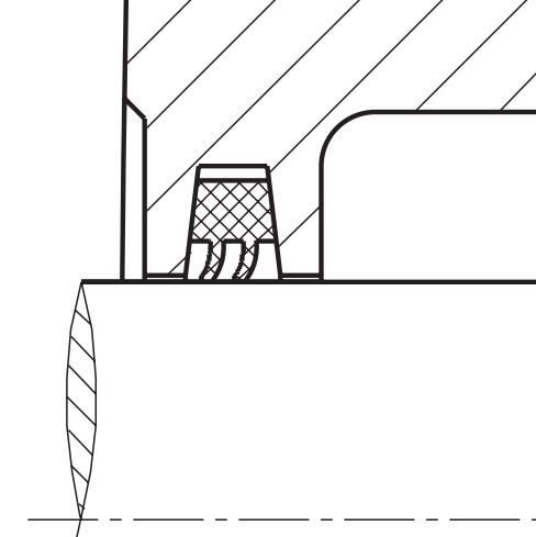 2、V形密封圈。V形密封圈通常與毛氈密封件結合使用,也可以使用雙唇密封代替毛氈,提供了額外且廉價的防止濕氣進入軸承殼的保護,V形密封圈可用于圓周速度高達15m/s的轉速,該類密封圈由丁腈橡膠(NBR)制成,適用于100℃以下的溫度,如果要求更高的溫度,則需要特殊材料(如氟橡膠)。V形密封圈不僅適用于潤滑脂潤滑的軸承座,還可作為油潤滑軸承座的輔助密封。