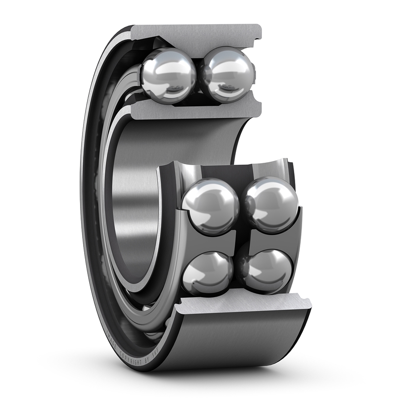 SKF成對安裝角接觸軸承有三種方式,即串聯、背對背和面對面,其中,當單個軸承的承載能力不足時,通常采用串聯配對,當串聯配對時,載荷線平行,徑向和軸向載荷由軸承平均分擔,然而,軸承組只能承受一個方向的軸向載荷,如果軸向載荷作用在兩個方向上,則必須添加第三個軸承,并對串聯對進行調整。