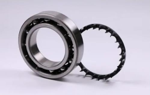 這次NTN軸承獲獎(jiǎng)的是一款高速深溝球軸承,EV.HEV用高速深溝球軸承,適用于電機(jī)和減速機(jī)等高轉(zhuǎn)速場(chǎng)景。該款軸承采用高強(qiáng)度新型材料,同時(shí)從工程學(xué)上建模優(yōu)化保持架形狀,特別是保持架兜孔部位的形狀,最大限度地降低由離心力引起的保持架變形,先從理論上達(dá)到超超高轉(zhuǎn)速后,再經(jīng)實(shí)踐優(yōu)化,最終得到該款深溝球軸承。