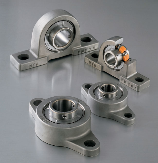 F-UC系列軸承座的滾道和滾動體是馬氏體不銹鋼(SUS440C)材質,拋油環(huán)和夾持器是奧氏體不銹鋼(SUS304)材質,緊定螺釘(W形螺釘)是馬氏體不銹鋼(SUS410)材質,密封件是硝基橡膠材質,軸承座外殼是鑄造奧氏體不銹鋼(SCS13)材質,均是NTN開發(fā)的優(yōu)質新材料。