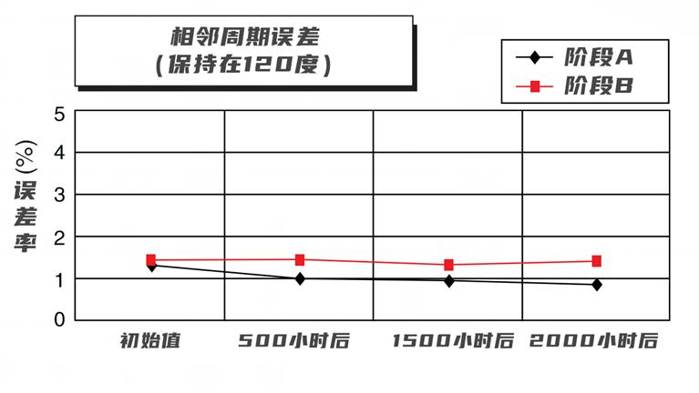 NTN集成旋轉傳感器軸承的信號精度測量數據如下所示。即使在120?C下靜止2000小時,NTN集成旋轉傳感器軸承仍具有穩定的信號特性,因此有助于提高所用裝置的可靠性。