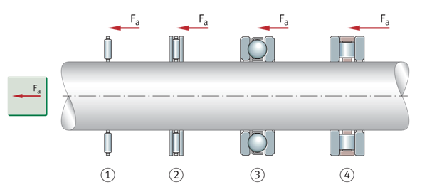如果主要存在軸向力(沿軸方向的力)——則使用主要支撐軸向力的軸承。