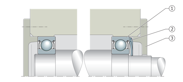 使用彈簧墊圈軸向調整軸承布置 ①深溝球軸承 ②彈簧墊圈 ③端蓋 | ![]() |