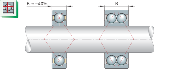四點(diǎn)接觸軸承和雙列角接觸球軸承的比較: B=軸承寬度 | ![]() |