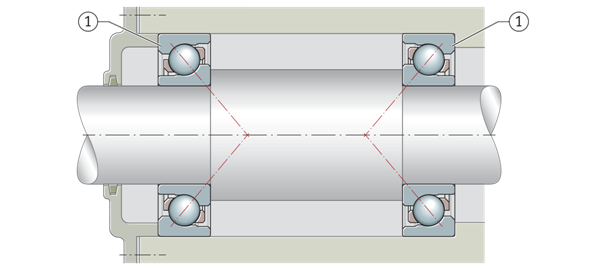 調(diào)整后的軸承布置 帶兩個單列角接觸球軸承 按X排列安裝的角接觸球軸承 | ![]() |
