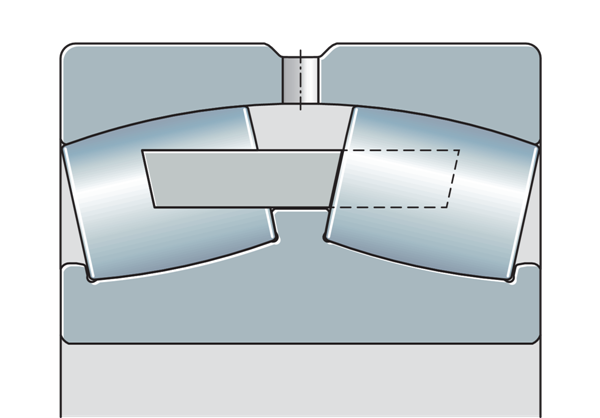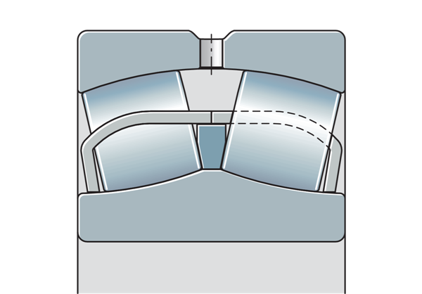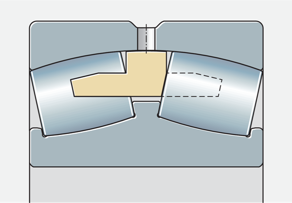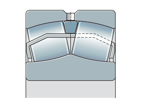 | 一件式鋼制保持架,內圈導向,內圈有兩個側向擋肋和一個中心肋 | ![]() |