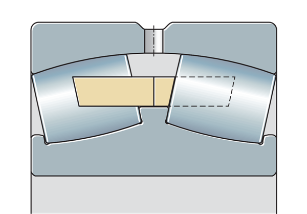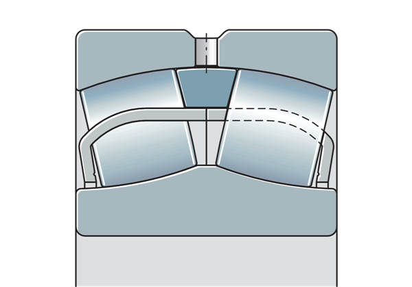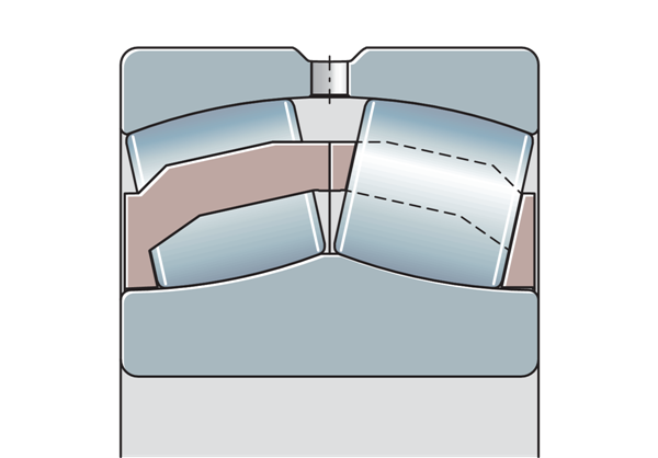 由于外圈有凹形滾動元件滾道,調心滾子軸承能夠進行角度調節,它們允許外圈和內圈之間在一定范圍內偏斜,而不會對軸承造成損壞,因此可以補償錯位、軸偏轉和殼體變形。