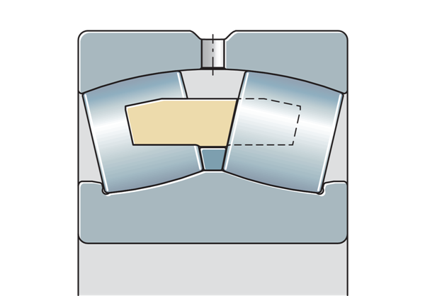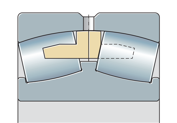 兩件式黃銅保持架 外圈導向,內圈帶兩個側向擋肋和一個中心擋肋 | ![]() |