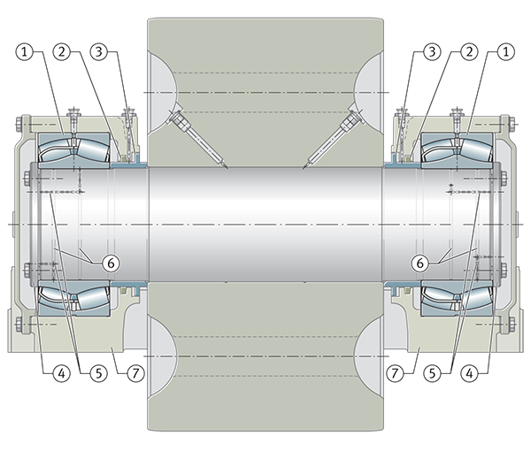 如果使用調心滾子軸承支撐具有垂直軸的軸,則必須特別注意確保向軸承提供可靠的潤滑劑。