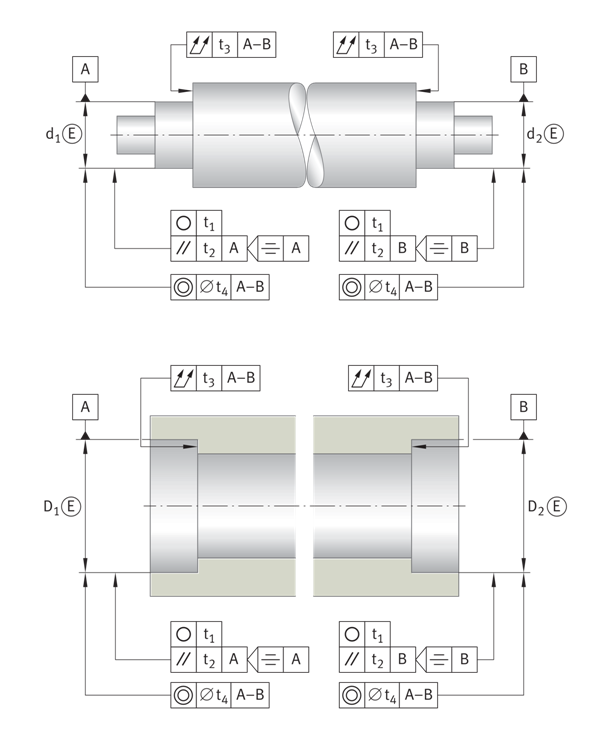 如果相鄰結構使用鑄鐵或鋼以外的材料,還必須考慮材料的彈性模量和不同的熱膨脹系數,以實現剛性底座。對于鋁制外殼、薄壁外殼和空心軸,如有必要,應選擇更緊密的配合,以實現與鑄鐵、鋼或實心軸相同的力鎖定。