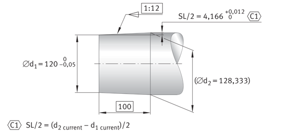 為了計算錐度斜率SL(標稱尺寸),錐度長度L乘以錐度比(1:12)