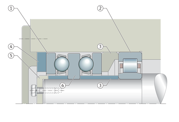 圖中的定位軸承在兩個方向上都受到較高的軸向力,軸必須在軸向上無間隙地引導。