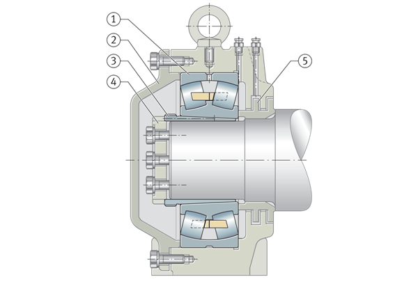 如果軸是水平的,則必須提供另一個可調節軸承。這在高速情況下尤為重要。如果軸是垂直的,如果軸承在所有操作狀態下都通過負載自由調節間隙,則可以省略相對軸承。