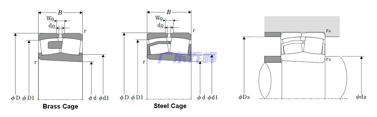 | 調(diào)心滾子軸承,帶圓錐孔&注油槽 - 尺寸 | |