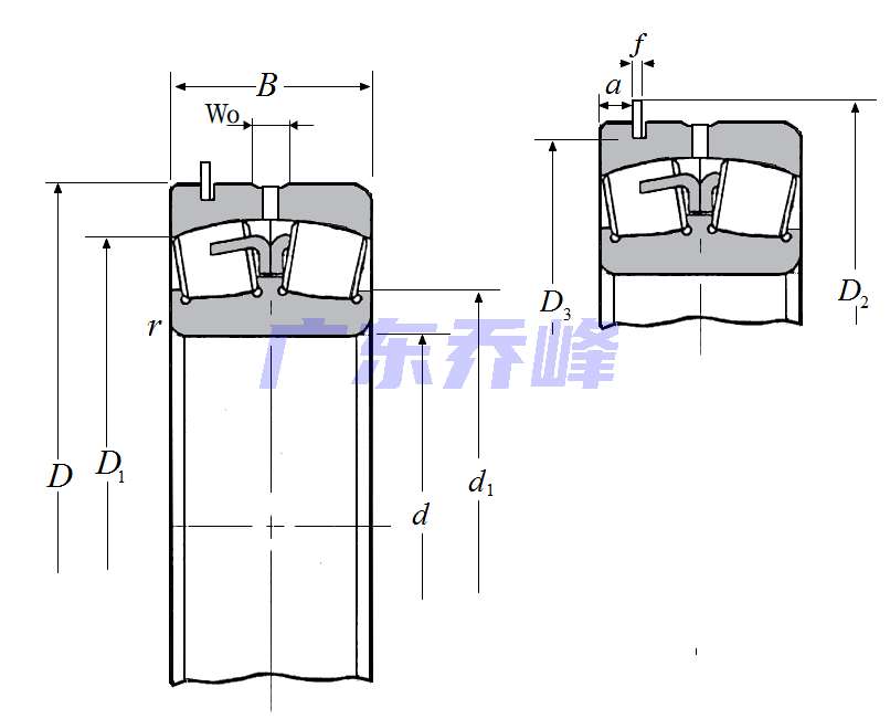 軸承型號:23026EANRW33C2,調心滾子軸承帶止動環,其基礎型號為23026,后綴列表:【EA:EA型,帶壓制鋼保持架,高載荷】【NR:帶止動環和止動槽】【D1:外圈潤滑油槽油孔】【C2:C2游隙】