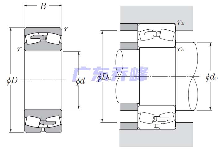 | 調心滾子軸承 - 圓柱孔,240系列 - 尺寸 | |