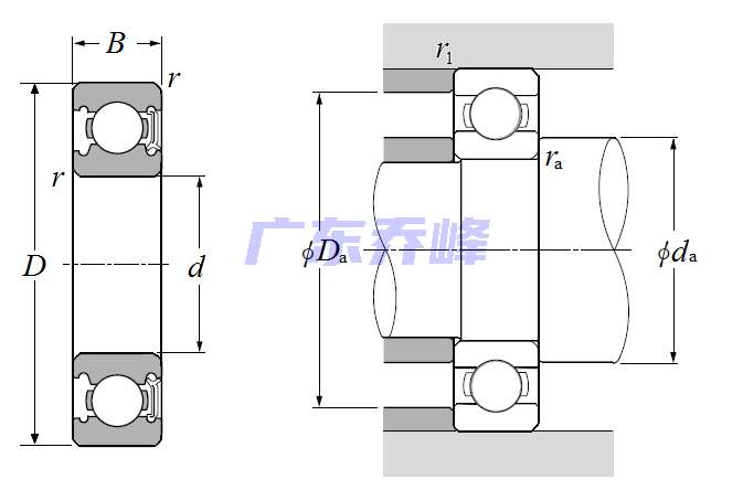 | 單列深溝球軸承 - 單面密封(接觸式橡膠密封) - 尺寸 | |
