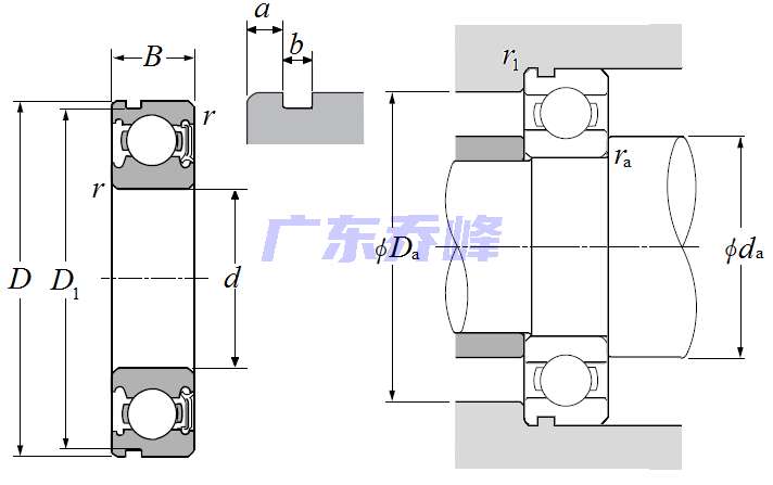 單列深溝球軸承 - 單面密封(輕接觸橡膠密封)帶止動環槽 - 尺寸