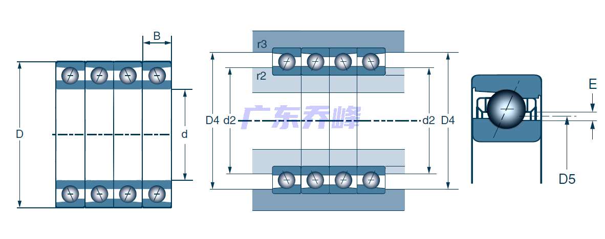 四列角接觸球軸承,機床用,Q21系列 - 尺寸