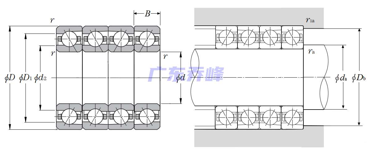 | 多列角接觸球軸承 - 串聯配對 - 尺寸 | |