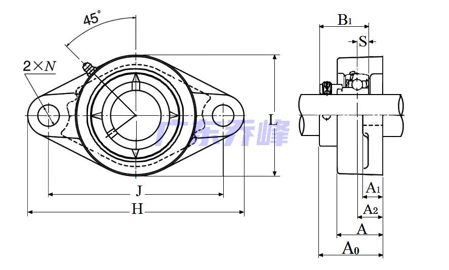 類型 雙螺栓菱形法蘭式軸承座單元