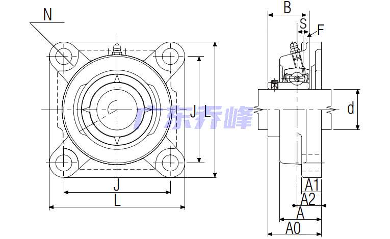 | 類型 | 四螺栓方形法蘭式軸承座 |