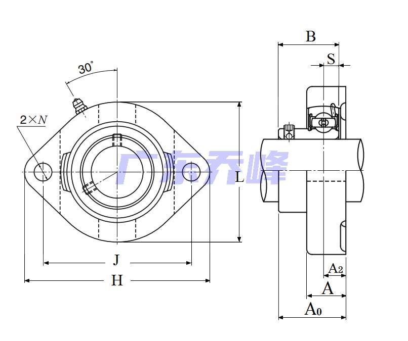 | 類型 | 雙螺栓菱形法蘭式軸承座單元 |