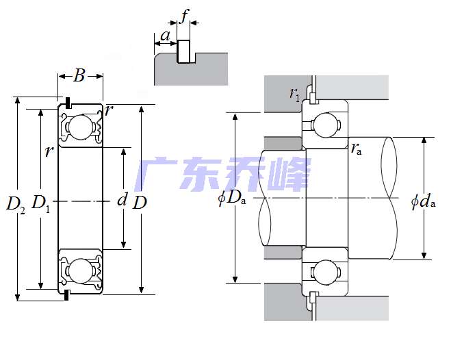 | 單列深溝球軸承 - 雙面防塵蓋帶止動環(huán),BL系列2 - 尺寸 | |