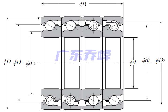 | 滾珠絲杠用四列角接觸推力球軸承 - DTFT配對(duì),開(kāi)式,兩排承受軸向載荷 - 尺寸 | |