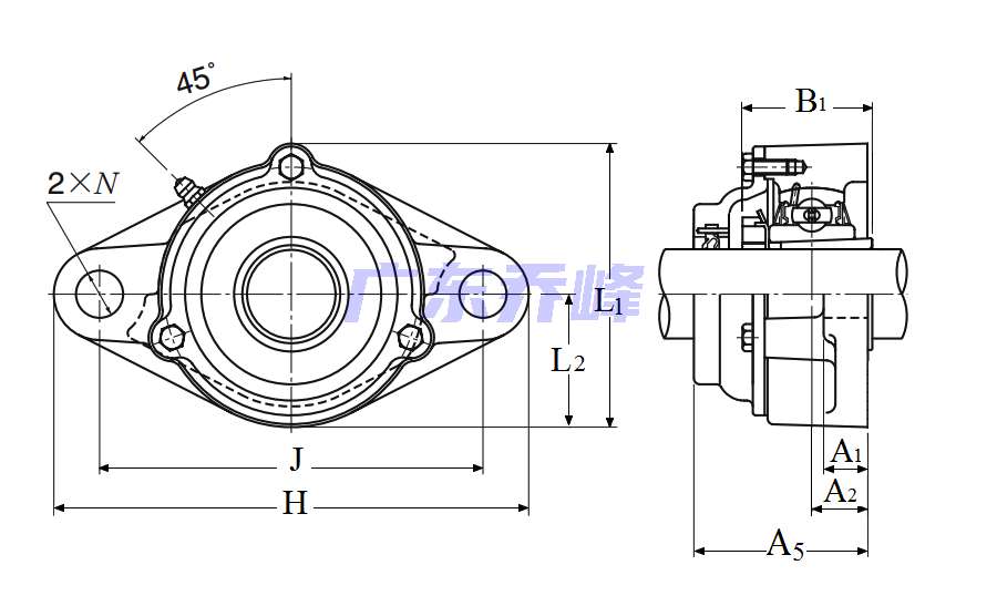 類型 雙螺栓菱形法蘭式軸承座單元