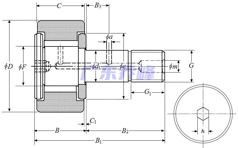 | 凸輪從動(dòng)螺柱式滾輪軸承 - 圓柱內(nèi)徑,CRV..H型 - 尺寸 | |