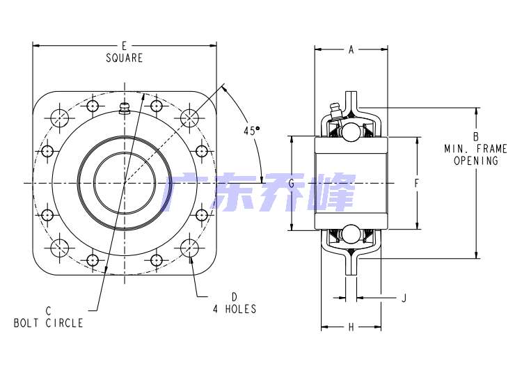 | 類型 | 四螺栓方形法蘭式軸承座 |