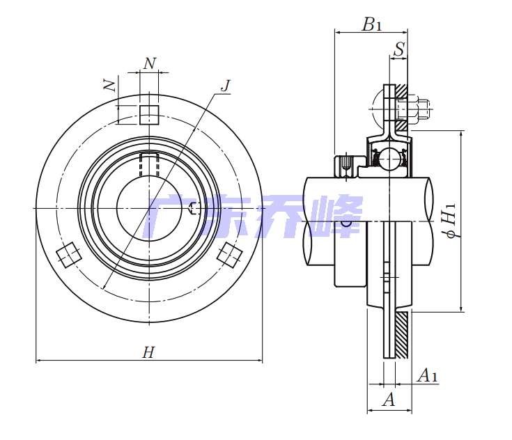 軸承型號:JELPF207-104,三螺栓圓形法蘭式軸承座單元,沖壓鋼外殼,帶偏心鎖緊套,JELPF型