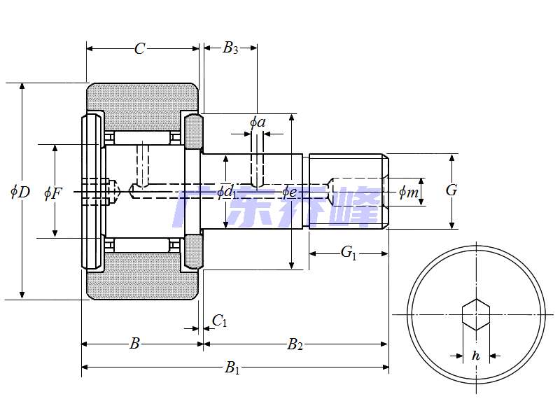 | 凸輪從動螺柱式滾輪軸承 - 圓柱內徑,KR..H型 - 尺寸 | |