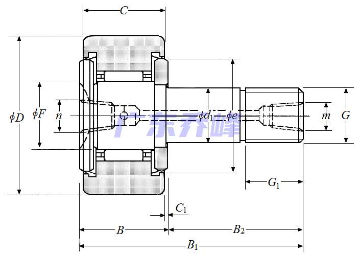 軸承型號:KRT35XLL,凸輪從動螺柱式滾輪軸承 - 圓柱內徑,KRT..LL型