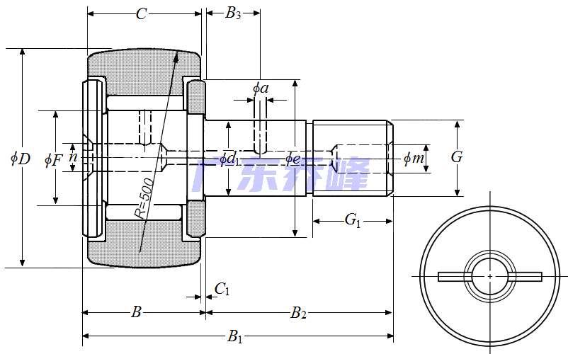 | 凸輪從動螺柱式滾輪軸承 - 球面外圈,KRV型 - 尺寸 | |