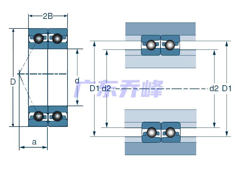 密封雙列混合陶瓷角接觸球軸承,高精度 - 尺寸