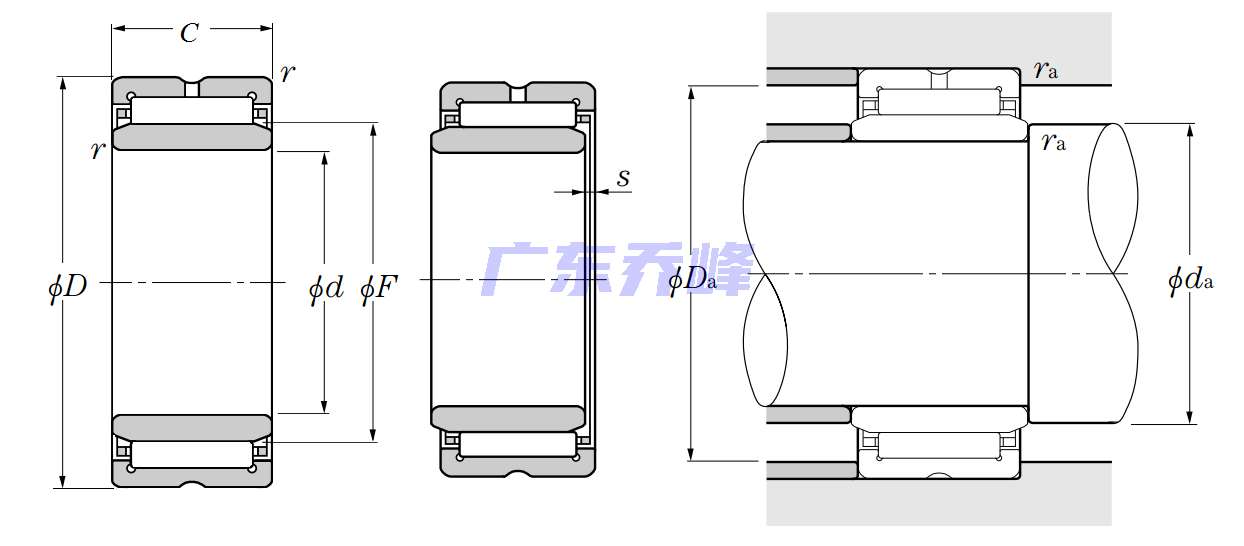 | 機(jī)加工滾針軸承帶內(nèi)圈 - NA49.R,NA59,NA69R,NK.R+1R系列 - 尺寸 | |