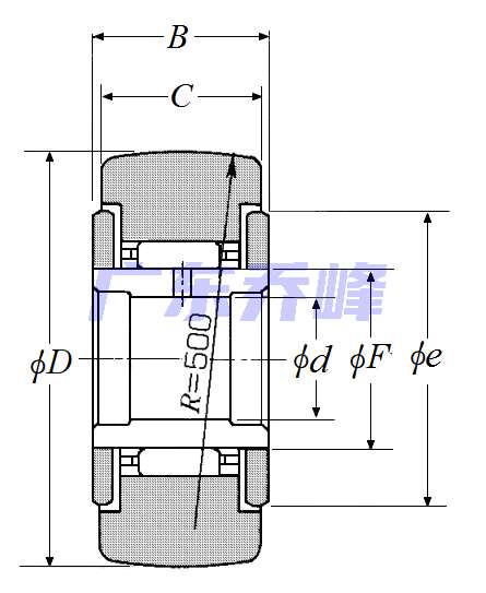 | 擋圈型滾輪軸承 - 帶內圈,NUTR型,球面外圈 - 尺寸 | |