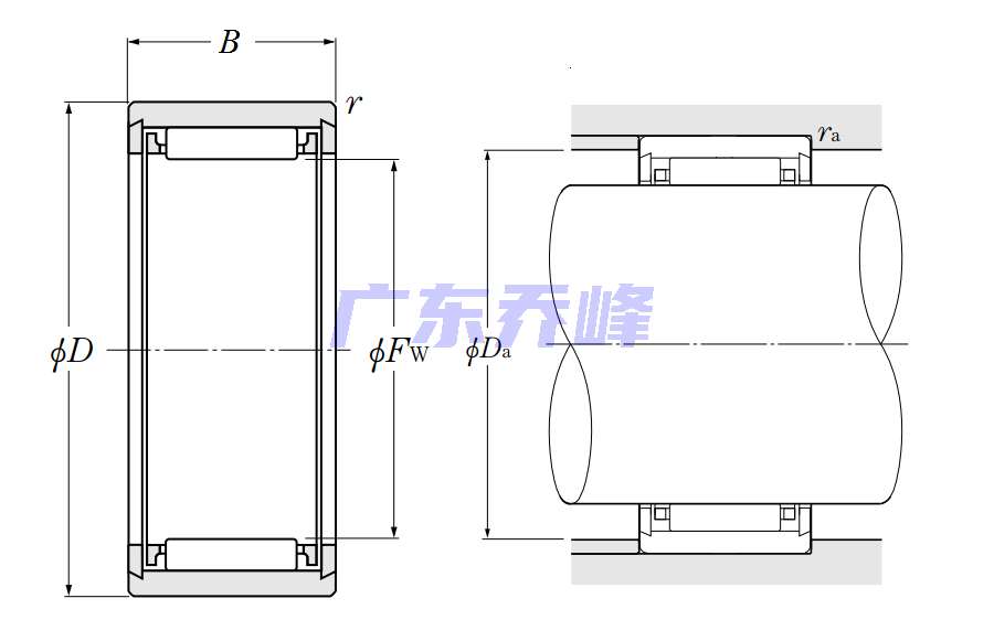 | 機加工滾針軸承不帶內圈 - NK,NKS系列 - 尺寸 | |